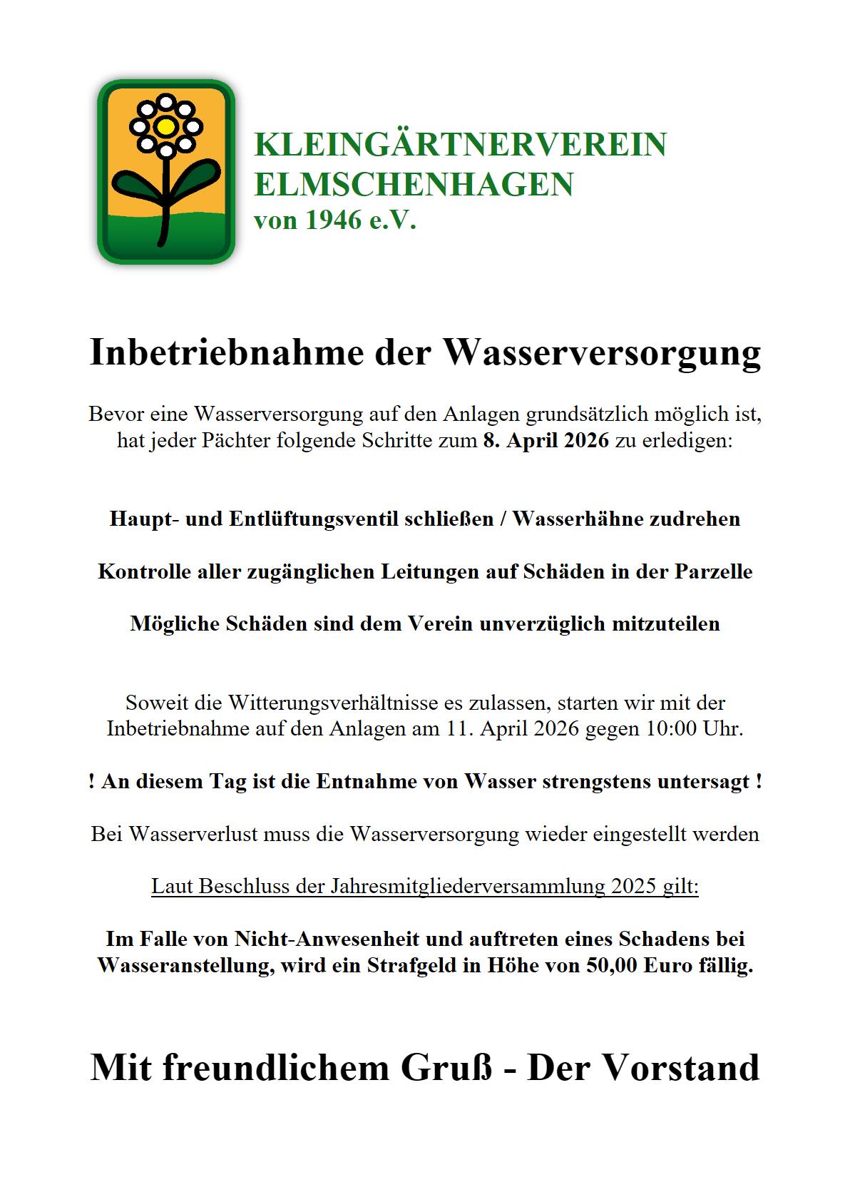 Vorbereitung: Inbetriebnahme der Wasserversorgung