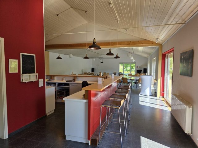 Das Mobiliar bietet Platz für circa 50 bis 70 Sitzplätzen (variiert durch Aufbau) verteilt auf maximal 11 Tische. Die Tische sind klassisch weiß, die Stühle aus hellem Holz samt Stoff.